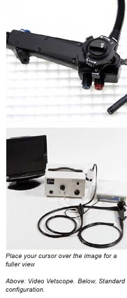 The 8mm Video VetscopeTM The Video Vetscope is the choice for field video endoscopy of intermediate-sized animals. The scope is made to interface with your laptop computer, and record images to your hard drive with the click of the mouse (which, based on feedback from vets, has proven easy to use, and the resultant stored data, valuable in keeping clients' informed of patients' status).